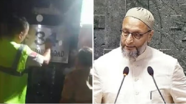 এক ভিডিওতে দেখা গেছে, পাঁচজনের একটি দল আসাদউদ্দিন ওয়াইসির বাড়ির বাইরে পোস্টার লাগাচ্ছিল। তারা সংসদ সদস্যের বাড়ির বাইরে ‘ভারত মাতা কি জয়’ স্লোগান দিচ্ছিল।