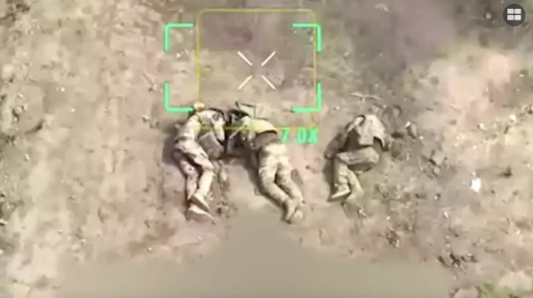 তিন সেনা ধুলায় ঢাকা রাস্তার ওপর হাঁটু গেড়ে বসে আছেন, হাত মাথার পেছনে রাখা। কিছুক্ষণ পরেই তারা মাটিতে লুটিয়ে পড়েন, নিস্তেজ ও অনড়। ড্রোনে ধারণ করা একটি ভিডিওতে এই দৃশ্য ধরা পড়ে। সিএনএনের খবর।