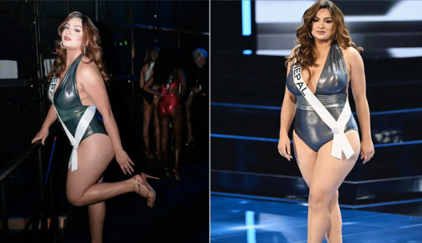 মিস ইউনিভার্সের ইতিহাসে এই প্রথমবার কোনো প্লাস সাইজ মডেল অংশ নিলেন। সুইমস্যুট রাউন্ডে তিনি সবার নজর কেড়ে নেন। তার কনফিডেন্স, তার সৌন্দর্য সবার মন কেড়ে নেয়। মেটালিক গ্রিন সুইমস্যুট পরে তাকে আন্তর্জাতিক মঞ্চে হাঁটতে দেখা যায়। সঙ্গে পরেছিলেন স্ট্র্যাপ হিল এবং বড় কানের দুল। সাজ সম্পন্ন করতে খুলে রেখেছিলেন চুল।